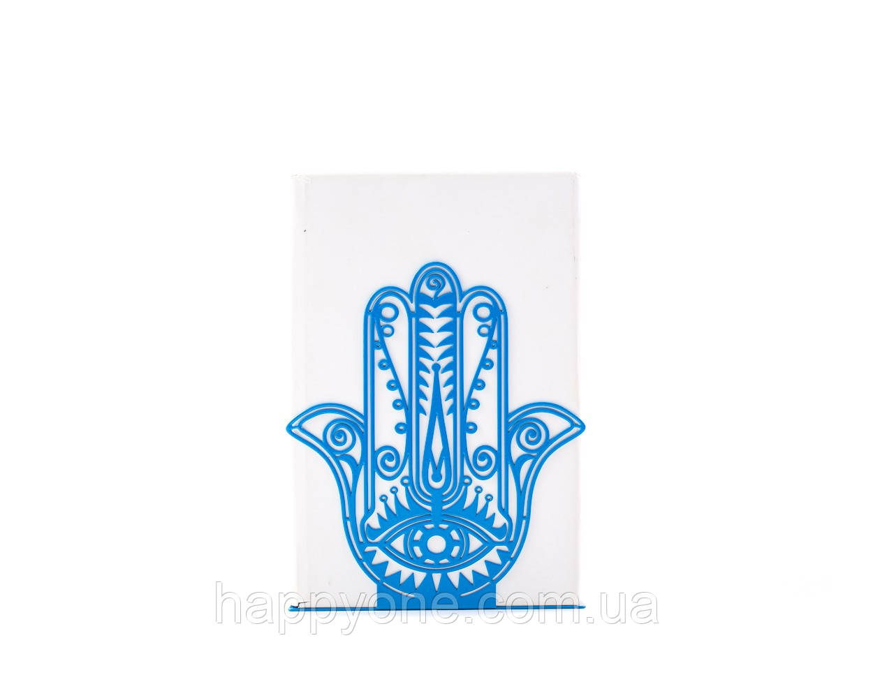 Металевий упор синього кольору у формі долоні. Хамса або "рука Міріам" відома як талісман, який захищає від сочка, приносить щастя й уберігає від втрат. Символічний декор у ваш будинок або подарунок коханим.